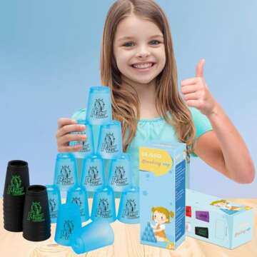 SEISSO 24PCS Quick Stack Cups, Stacking Cups Training Game for School Family Party, Kids Gifts Starter Set of Stacking Cup, Blue & Black