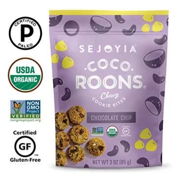 Sejoyia Gluten Free Vegan Coco Roons Paleo Keto Snacks, Chocolate Chip, 3 Ounce (6 Count), Organic Coconut