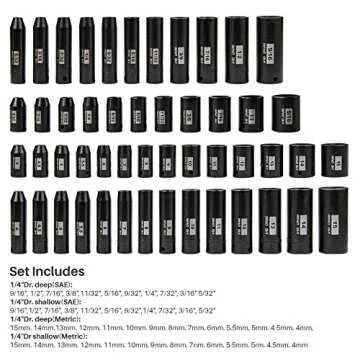 SEKETMAN 50-Piece 1/4" Inch Drive Deep And Shallow Impact Socket Set, SAE/Metric(5/32-Inch to 9/16-Inch and 4-15mm),CR-V-50BV30