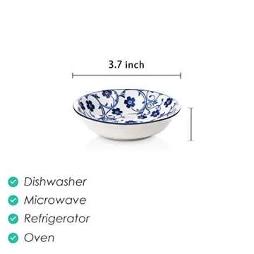 Selamica Ceramic Dipping Bowls, 2.5oz Mini Bowls Soy Sauce Dish, Dip Bowls, Appetizer Side Dishes for Sushi,Sauce, Party, Pinch Bowls Pack of 6 (Vintage Blue)