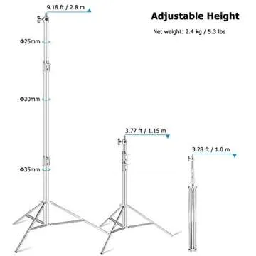 Selens Stainless Steel Heavy Duty Light Stand, 9ft/2.8m Spring-Cushioned Tripod Stand with 1/4 & 3/8" Adapter Compatible with Photo Studio Reflector, Light, Softbox, Umbrella - 2 Packs