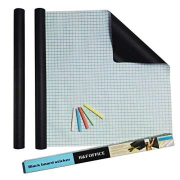 Show more Transform your space with the Self Adhesive Chalkboard Paper from SummerZee! Measuring a generous 17.7" x 78.7", this innovative blackboard wallpaper is perfect for unleashing creativity in any environment—be it your home, office, or classroom. With five colorful chalk pieces included, you'll have everything you need to doodle, plan, or decorate. Its self-adhesive backing allows for easy application on any smooth surface, and removal is just as simple, ensuring that you can change your designs with ease. Enjoy a fun and interactive way to decorate, organize, and enhance your surroundings with this versatile product.