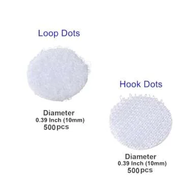 Self Adhesive Dots, 1000Pcs(500 Pair Set) 0.39 Inch / 10mm Diameter Hook and Loop Dots Tape, 10mm Nylon Sticky Back dots, Suitable for Classroom, Office, Home, White