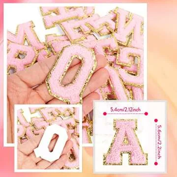 Self-Adhesive Iron on Letters Chenille Patches: 26PCS Pink Letter Patches Stickers Varsity Letter Patches for Clothing Jackets Backpacks Hats Repair Alphabet Embroidered Applique Preppy Patch
