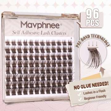 Self Adhesive Lash Clusters Kit Brown Eyelash Clusters No Glue Needed Brown Lash Individuals 8-16MM Self Adhesive Eyelashes Natural Lash Extensions with Eyelash Tweezers