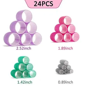 Self Grip Hair Rollers Set, Jumbo Size Hair Curlers, Salon Hair Dressing Curlers, Self Holding Rollers for DIY or Hair Salon Curlers for Hair Styling, 4 Sizes 24 Pack (Multicolor)
