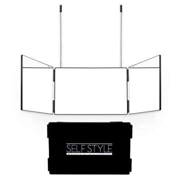 Show more Experience the ultimate convenience in your daily beauty routine with the Self Style System Travel Size 3 Way Mirror. This beautifully designed mirror, available in chic black, features an innovative 3-way reflection system that allows you to check your appearance from multiple angles with ease. Perfect for beauty enthusiasts, this mirror includes adjustable height brackets to ensure you achieve the perfect view whether you’re applying makeup, styling your hair, or trimming your hair. Its compact size makes it ideal for travel, allowing you to maintain your grooming routine no matter where you are.