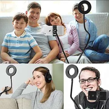 Show moreIntroducing the Selfie Ring Light with Phone Holder Stand – the ultimate lighting solution for anyone passionate about capturing the perfect shot! As a versatile accessory, it boasts a range of features designed to elevate your photos and videos, making it ideal for live streams, makeup tutorials, or simply enhancing your bedroom ambiance. With a sleek design and compact size, it seamlessly fits into any space, from an office desk to your kitchen counter. The adjustable phone clip holder enables you to position your device at various angles, while the dimmable LED lights ensure you always look your best, regardless of the environment.