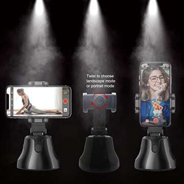 Selfie Stick Tripod 360°Rotation Auto Smart Face & Object Tracking Cell Phone Tripod Holder for Video Recording, Work with Tripod for iPhone Android