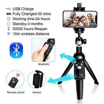 Selfie Stick Tripod Bluetooth, 40 Inch Extendable Flexible Selfie Stick Tripod with Detachable Wireless Remote, Compatible with iPhone Xs Max/XS/XR/iPhone X/iPhone 8 Plus/iPhone 7/iPhone 6 Plus/Galaxy
