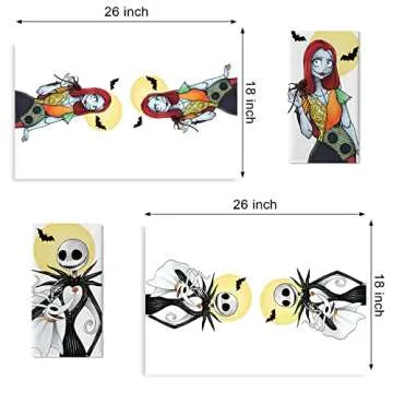 Seliem Halloween Jack Kitchen Dish Towels Set of 2, Spooky Sally Skull Ghost Moon Bat Hand Towels Drying Baking Cooking Cloth, Funny Holiday Party Home Kitchen Decor 18 x 26 Inch
