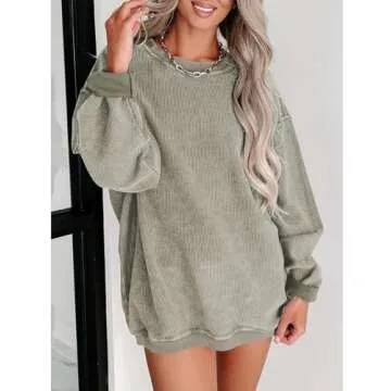 Show moreIntroducing the SELINK Womens Crewneck Oversized Corduroy Corded Sweatshirt, a must-have addition to your wardrobe that seamlessly blends comfort and style. Crafted from premium quality corduroy fabric, this sweatshirt is not only soft and breathable but also incredibly durable and skin-friendly, ensuring a delightful wearing experience throughout the day. Its versatile design features an oversized fit with long sleeves, drop shoulders, and ribbed cuffs and hem, making it the perfect choice for women looking for both fashion and comfort in one piece. Whether you’re lounging at home or heading out for a casual day, this stylish pullover top will keep you cozy while exuding an effortlessly chic vibe.