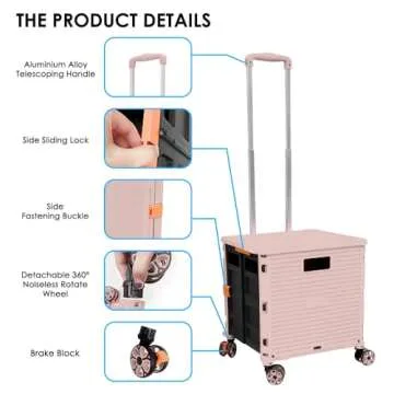 SELORSS Foldable Utility Cart Portable Collapsible Crate Rolling Carts with Wheels Rolling Tote Basket Teacher Cart with Lid Wear-Resistant 360°Rotate Wheel Noiseless for Shopping Storage Office Use