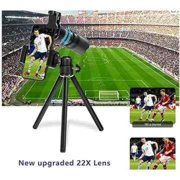 Show more Transform your smartphone photography with the Selvim Phone Lens Kit, an industry-leading 4-in-1 lens kit designed for enthusiasts and professionals alike. This exceptional kit features a 22X telephoto lens, a 235° fisheye lens, an HD 0.62X super wide angle lens, and a 25X macro lens, all bundled with essential accessories like a flexible clamp, phone clip, and an upgraded metal tripod. With the Selvim lens kit, you can easily turn your phone into a powerhouse for capturing stunning landscapes, detailed close-ups, and unique artistic shots.