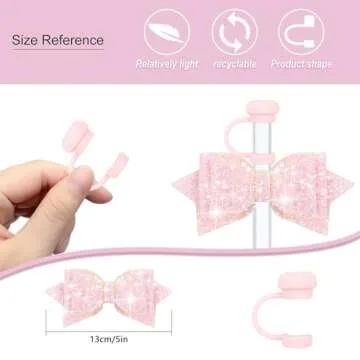 SEMATA(2+2 2PCS Silicone Straw Cover for Stanley Cup 2PCS Cute Glitter Bow Charms Straw Toppers for Stanley Cup 30&40 Oz Stanley Straw Cover for Tumblers Stanley Cup Accessories(Pink)