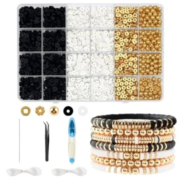 SEMATA Friendship Bracelet Making Kit for Women White & Black Clay Beads - Gold Beads for Bracelets Making & Jewelry Making