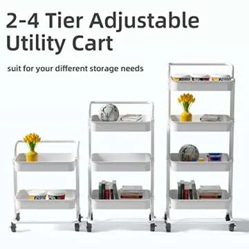 Semounva 4 Tier Rolling Utility Cart with Lockable Wheels, Easy to Assemble Rolling Cart Organizer, Multi-Purpose Storage Cart on Wheels with Mesh Basket for Kitchen, Bathroom, Living Room, Office