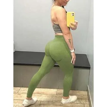 SENBAN Seamless Leggings for Women High Waist Tummy Control Butt Lift Yoga Pants Workout Gym Smile Contour Tights Grass Green M