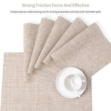 SENDAY Placemats, Set of 8 Heat-Resistant Placemats Stain Resistant Anti-Skid Placemats for Kitchen Table, Washable Durable PVC Table Mats Woven Vinyl Placemats Beige