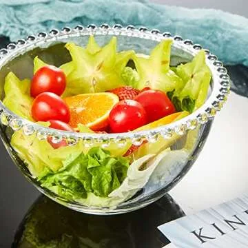 Sendimic Vintage iPearl-edge Clear Glass Salad Bowls,Glass Serving Bowls,Glass Mixing Bowls 8" Inch
