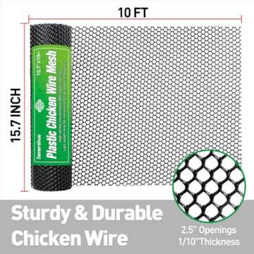 Senershuo Chicken Wire mesh 15.7IN x 10FT Black Plastic mesh Sheet Plant Fence Barrier Chicken Wire Fence Mesh Hexagonal Poultry Mesh Netting Garden Fencing Cat Fencing and Bird Netting