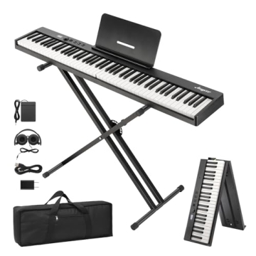 Senfot 88 Key Foldable Piano Keyboard, Full Size Electronic Piano With Power Adapter, Headphones and Carrying Bag, Designed for Both Novices and Experienced Players, Black with Stand