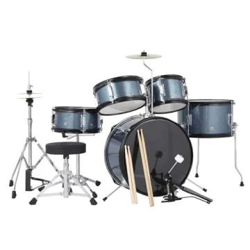 Senfot Drum Set for Musical Instruments, AD-300 Five Piece Drum, Junior Drum Set with Bass Drum, Tom-Tom, Snare, Cymbals, Hi-Tone Drum, Drum Sticks, Base Pedal and Stool, Beginner Set Blue