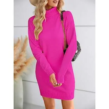 SENFURE Women Sweater Dress Turtleneck Long Sleeve Soft Sweater Knitted Pullover Dress for Fall Winter Rose Red