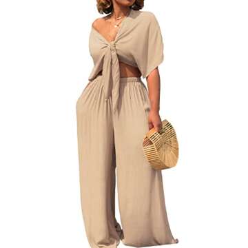 Show moreIntroducing the SeNight Women's Sexy Solid Apricot Jumpsuit, a stunning blend of elegance and modern fashion that promises to make you feel confident and fabulous. This two-piece jumpsuit features a stylish v-neck design complemented by short sleeves and a chic loose-fit palazzo style, perfect for those sun-soaked days by the pool or a glamorous evening out. Tailored from high-quality, breathable fabric, this outfit ensures comfort without compromising on style. Whether you're enjoying a vineyard party, a beach day, or a brunch with friends, this versatile cover-up can be dressed up or down to fit any occasion.