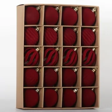 Senjie 20PCS Velvet Christmas Tree Ornaments - Flocked Red Balls
