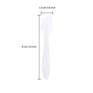Show more Enhance your beauty regimen with the Senkary 200 Pack Cosmetic Makeup Spatulas. This incredible set features 200 small, disposable plastic spatulas, each measuring 3.2 inches in length, designed to elevate your skincare and makeup application experience. Crafted from premium quality plastic, these spatulas boast a smooth surface that ensures safe use and effortless scooping of your favorite creams, masks, and balms. The translucent finish adds a sleek touch to your beauty arsenal, making it a stylish and functional accessory to any cosmetic kit.
