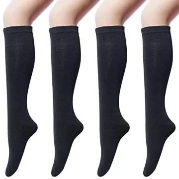 Senker Women's Cotton Knee High Socks - 4 Pairs, Black, Medium