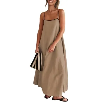 Show more Step into summer with confidence and style with the Senllen Summer Maxi Dress, designed for the modern woman who seeks versatility without sacrificing comfort. Crafted from a premium lightweight blend of linen, this dress not only promises exceptional breathability but also a soft touch that feels like a gentle caress on your skin. The spaghetti straps and straight neckline showcase your shoulders beautifully while allowing for easy adjustments to suit your unique fit. With a charming brick red contrast trim and an inviting maxi length, this dress seamlessly transitions from beach outings to evening parties, making it a fabulous addition to any wardrobe.