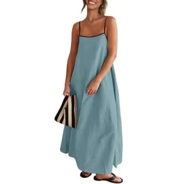 Senllen Women's Linen Dress - Flowy Sundress with Contrast Straps