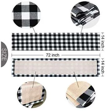 Show moreTransform your holiday gatherings with the **Senneny Christmas Table Runner**, measuring 14 x 72 inches. This elegant runner perfectly encapsulates the festive spirit of Christmas with its classic black and white plaid design. It provides a cozy, charming atmosphere for your home, making it an essential addition to your seasonal decorations. Crafted from high-quality cotton fabric and natural burlap, this table runner is not only stylish but also durable, ensuring it withstands all occasions, from everyday use to special celebrations.