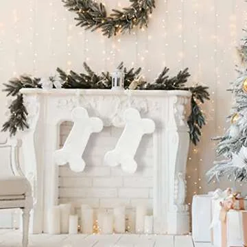 Senneny Snowy White Plush Pet Dog Christmas Stocking, Dog Christmas Stockings Large Bone Shape Faux Fur, Hanging Christmas Holiday Season Party Decor for Pets Dogs