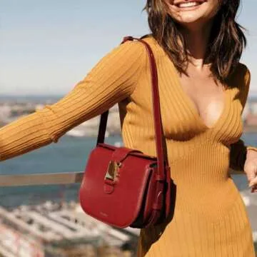 Senreve Cadence Crossbody, 100% Genuine Italian Leather Women's Handbag, Crossbody, Shoulder Bag, Pebbled Merlot Deep Red