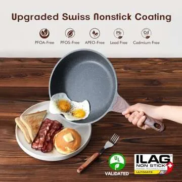 Show more Introducing the ultimate cooking companion: our Safe Non-stick Granite Pans! These premium cookware items are designed to elevate your culinary experience with exceptional performance and versatility. Crafted with Swiss ILAG non-stick coating, these pans are SGS approved and free from harmful substances like PFOA, PFOS, APEO, lead, and cadmium.