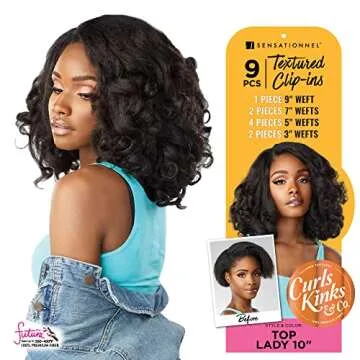 Sensationnel Curls Kinks and co Clip in - top lady 10-inch textured clip in 9 piece pack adds volume protective style - Curls Kinks and Co Top Lady 10 Inch (1 JETBLACK)