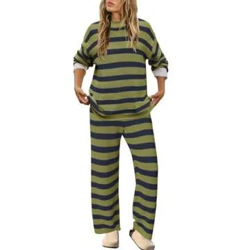 SENSERISE Womens Lounge Sets Oversized Sweater Set Striped Long Sleeve Tops and Pants Pajamas with Pockets