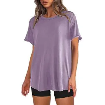 SENSERISE Womens Oversized T Shirts Crewneck Short Sleeve Summer Athletic Tees Shirt Loose Fit Y2K Tops(Purple,M)