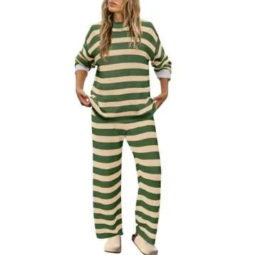 SENSERISE Womens Striped 2 Piece Set: Oversized Knit Lounge Sets with Pockets
