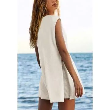 Show more Introducing the SENSERISE Women's Summer Sweater Sets, a perfect blend of style, comfort, and versatility that every woman needs in her wardrobe this season! Crafted from a premium soft and stretchy ribbed fabric, this two-piece outfit includes a chic tunic top and high-rise shorts ideal for those sunny beach vacations or laid-back weekends. With its breathable and skin-friendly material, you'll feel as good as you look, making it a must-have for your summer essentials!