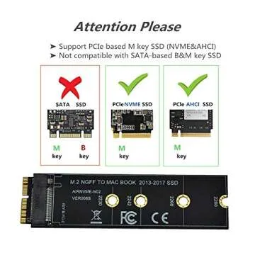 Show moreUpgrade your MacBook with the **Sensico M.2 NVME SSD Convert Adapter Card**, the perfect DIY kit for transforming your device into a high-performance powerhouse. Designed specifically for MacBook Air (11” A1465 and 13” A1466) and MacBook Pro Retina (13” A1502 and 15” A1398) models from 2013 to 2017, this adapter supports a wide range of NVME/AHCI SSDs, ensuring your experience is both seamless and efficient. Please note, this adapter does not fit early 2013 MacBook Pro models and is not compatible with external SSD enclosures. Make your upgrade hassle-free and enjoy the advantages of modern storage technologies that deliver enhanced speed and storage capacity.