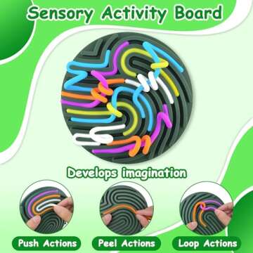 Show moreIntroducing the Sensory Activity Board for Kids, the ultimate portable fidget toy designed to engage, calm, and inspire creativity in children aged 3 and above. This innovative silicone busy board features 13 vibrant strings and comes with a handy travel bag, making it perfect for hours of fun on-the-go! Whether you’re on a plane, waiting in line, or simply relaxing at home, this sensory board offers a screen-free alternative for children to channel their energy positively.