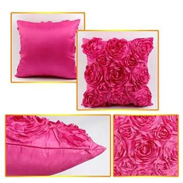 Show more This stunning pillow cover set is the embodiment of elegance and charm, crafted to add a touch of romance to any space. Whether you're looking to enhance your bedroom's allure or infuse a dash of vibrancy into your living room, this pair of pillow covers is designed to captivate. Made with glossy satin, these covers feature exquisite 3D rosettes that shimmer just enough to give your décor a delightful twist. Their chic and feminine aesthetic makes them the perfect addition, especially for a little princess's room, creating a sanctuary of whimsy and elegance.
