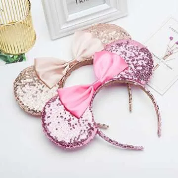 Sequin Mouse Ears headband,2pcs Sequin Headband Glitter Hairband for Baby Shower Headwear Halloween Theme Party Decorations