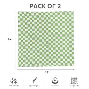 SERAPHY Muslin Swaddle Blankets - 100% Cotton Baby Blankets 47x47 inches - 2 Pack (Green + Plaid)