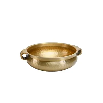 Introducing the **Serene Spaces Living Gold Handi Bowl**, an exquisite piece designed to elevate your decor and enrich your special occasions. Measuring **12" in diameter and 4.5" tall**, this beautifully crafted aluminum bowl showcases a stunning hammered texture that not only adds depth but also evokes the enchanting feel of vintage charm. Its *affordable brass look* brings sophistication to any setting, making it a versatile choice for both **everyday elegance** and **festive celebrations**.