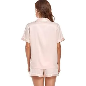 Show more Discover unparalleled comfort with this exquisite pajama set crafted from high-quality silk-like satin fabric. Perfect for lounging, sleeping, or casual wear, these pajamas provide a soft and lightweight feel that gently wraps you in luxury. Designed by the renowned brand Serenedelicacy, this two-piece outfit features a lovely top with a notch collar, delicate piping trim, and a chest pocket, ensuring functionality meets style. With a center front closure secured by four elegant shell buttons, and shorts that boast a comfy elastic waistband and adjustable drawstring, every detail is curated for maximum comfort.